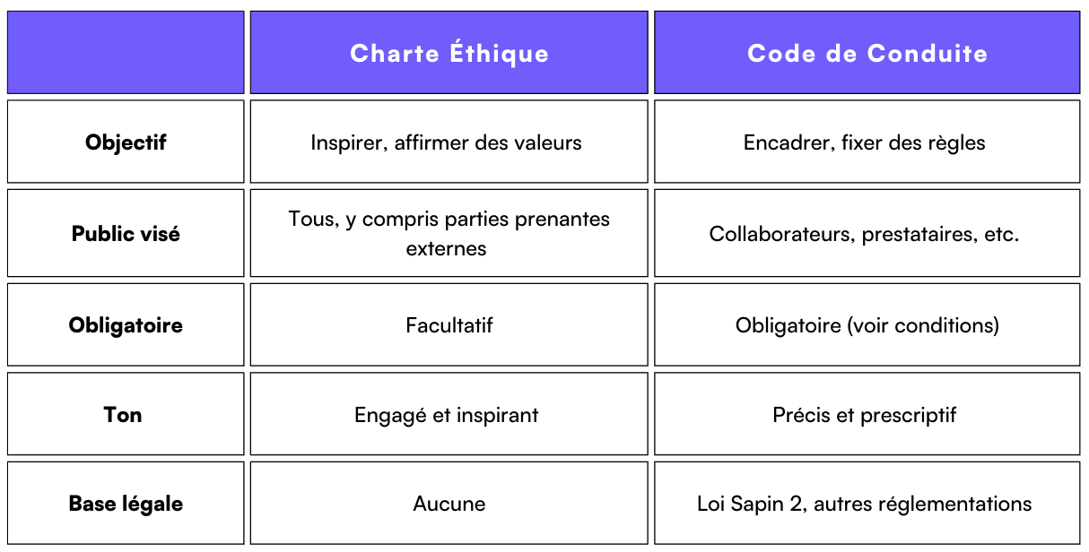 - Charte éthique ou code de conduite : lequel choisir ?